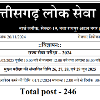 CGPSC NOTIFICATION 2025 राज्य सेवा परीक्षा का नोटिफिकेशन जारी 246 पदों के लिए 9 फ़रवरी 2025 को होगी प्रारंभिक परीक्षा